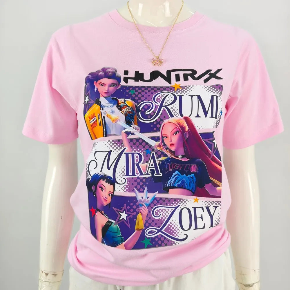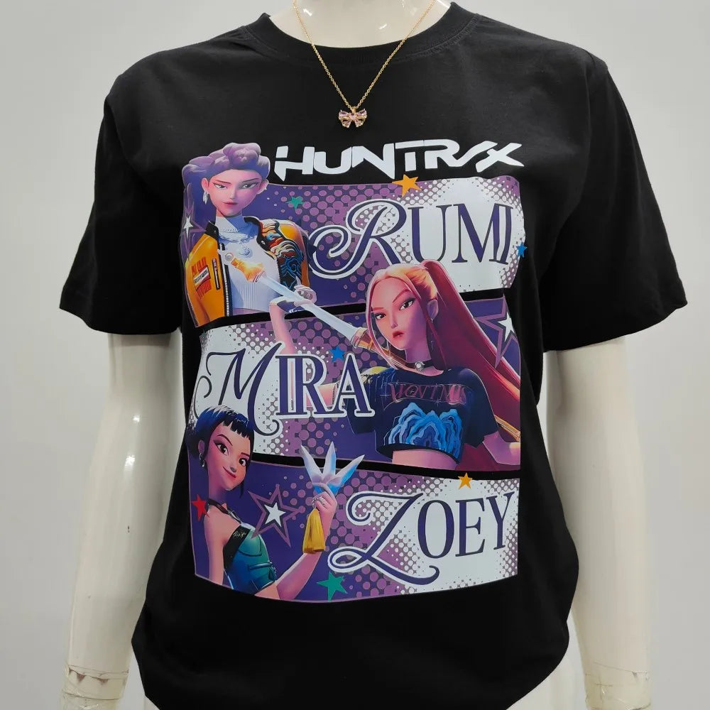 Featuring Rumi, Mira, and Zoey – the iconic girl group from Demon Hunters – this stylish shirt is the perfect blend of anime fashion and K-Pop idol vibes. Designed with vibrant, high-quality prints on both sides, it brings your favorite characters to life while making you stand out in every crowd.
