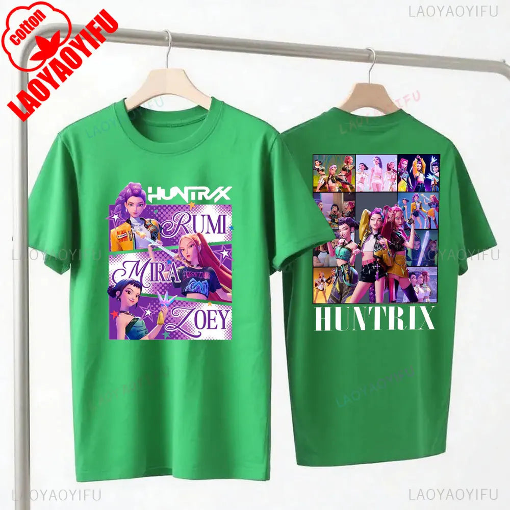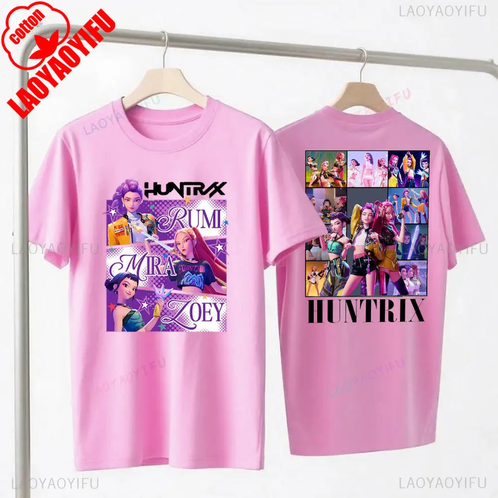 Step into the magical world of K-Pop and anime with the Huntrix Girls K-Pop Demon Hunters Two-Sided Anime Style Shirt! 🎶✨