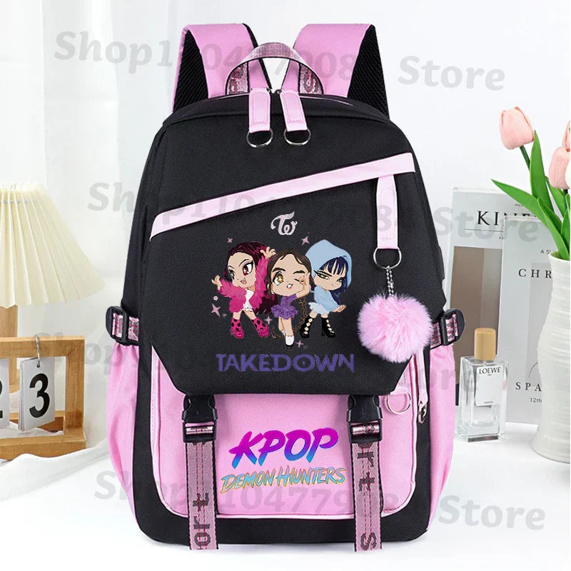 Embrace the world of K-pop and anime with the Demon Hunters Fashion Backpack, designed for boys and girls who love unique style and functionality — a must-have for students and fans alike!