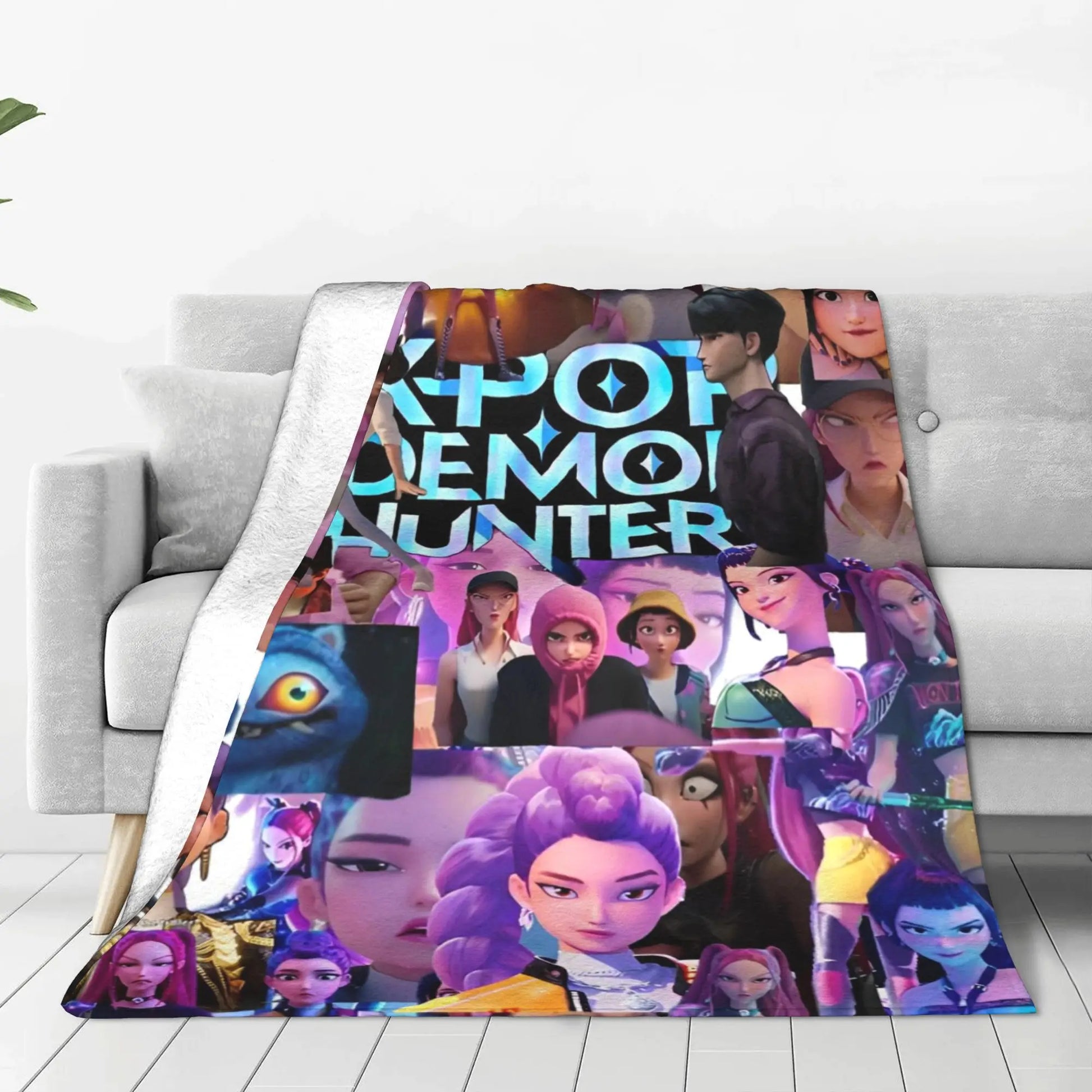 Vibrant and detailed design featuring Zoey, Rumi, and Mira from the popular KPop Demon Hunters seriesLightweight and portable – ideal for outdoor travel, cozying up in bed, or as a decorative rugMeasures approximately 130x150cm – perfect for a snug fit on beds, couches, or as a travel companionEasy to clean and maintain, ensuring long-lasting quality and color vibrancyAn excellent gift choice for KPop enthusiasts, Demon Hunters fans, or anyone who appreciates unique and stylish home decorGreat for enhancing the aesthetic of bedrooms, living rooms, or travel setups