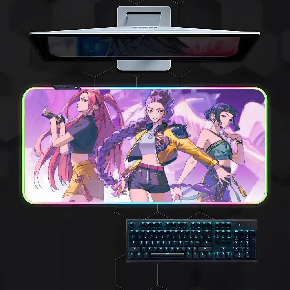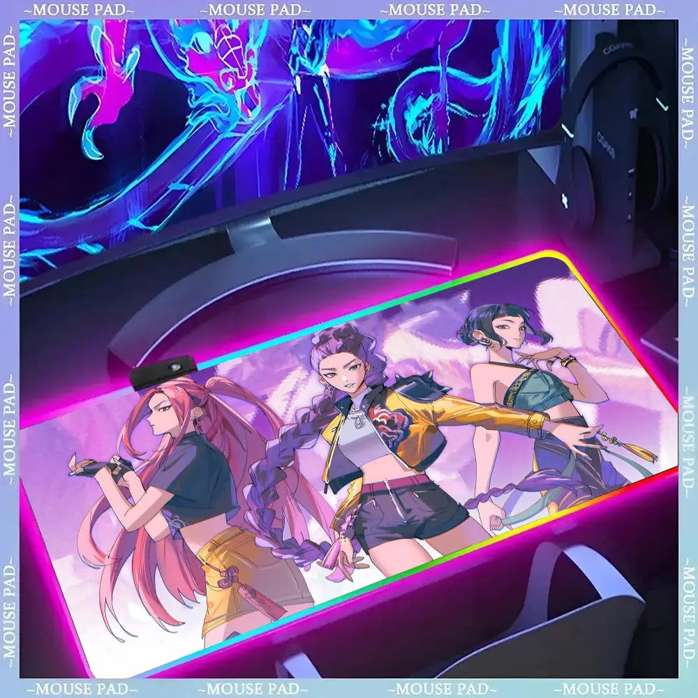 Elevate your gaming setup with the Funny KPop D-Demon H-Hunters Mouse Pad, featuring vibrant RGB lighting and a smooth surface for optimal mouse performance — a must-have for dedicated gamers and KPop fans alike!