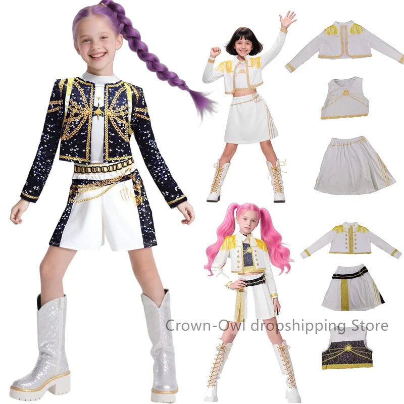 Kids Girls 3D Print Rumi Zoey Mira Cosplay Costume – Perfect for Kpop & Demon Hunter Fans