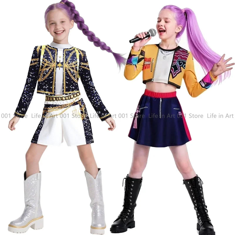 Kids Girls Kpop Demon Hunter Cosplay Costume Set – Perfect for Halloween & Parties