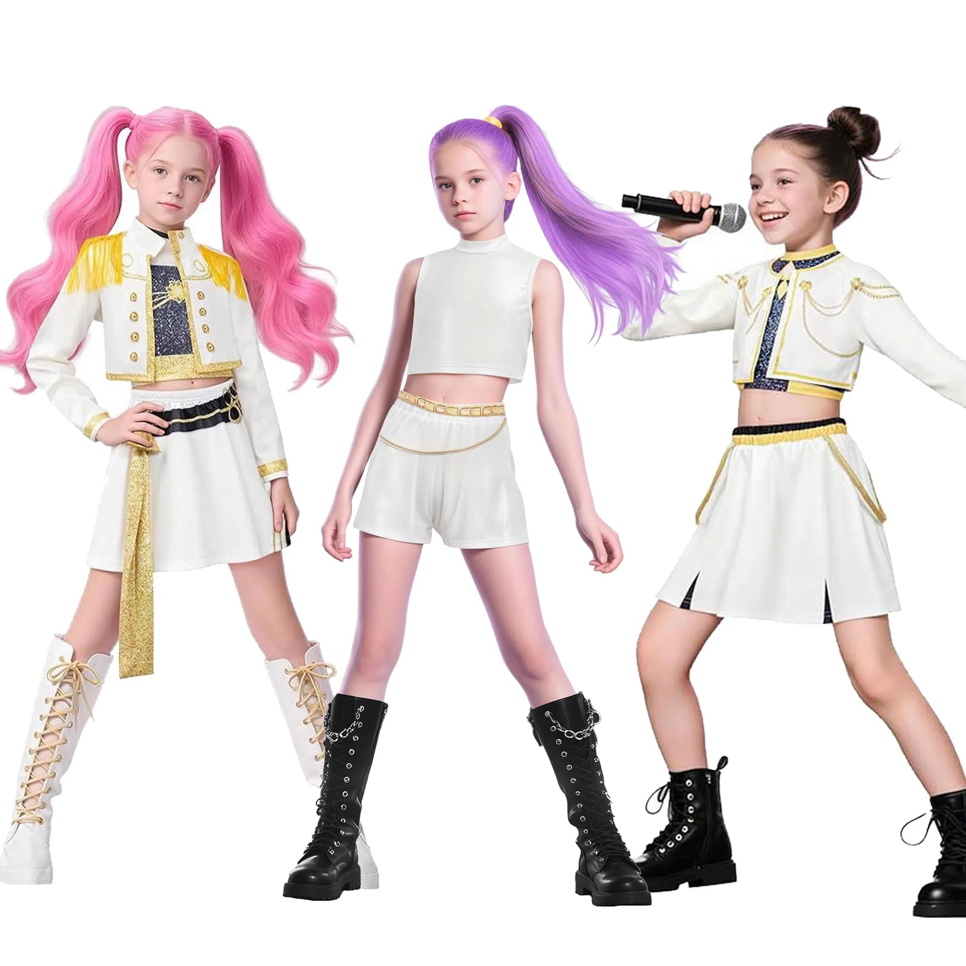 Transform your child into their favorite anime idol with the Rumi, Zoey, and Mira cosplay full suit set. Perfect for young fans of Kpop Demon Hunters, this costume is ideal for stage performances, Halloween parties, and more!