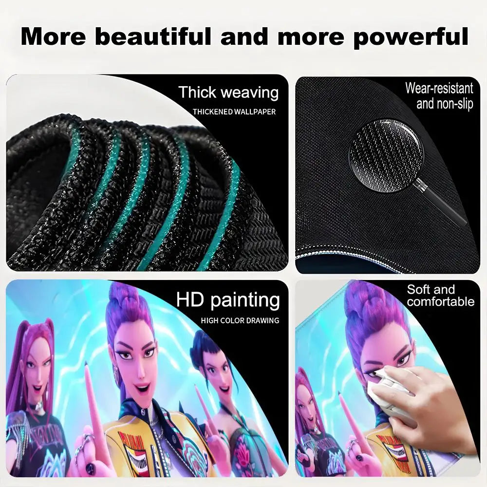 Enhance your workspace with this vibrant KPop Demon Hunters desk mat, featuring stunning animation patterns. Perfect for fans and those looking to add a splash of personality to their office setup!