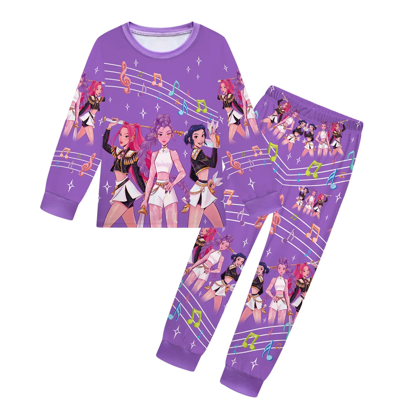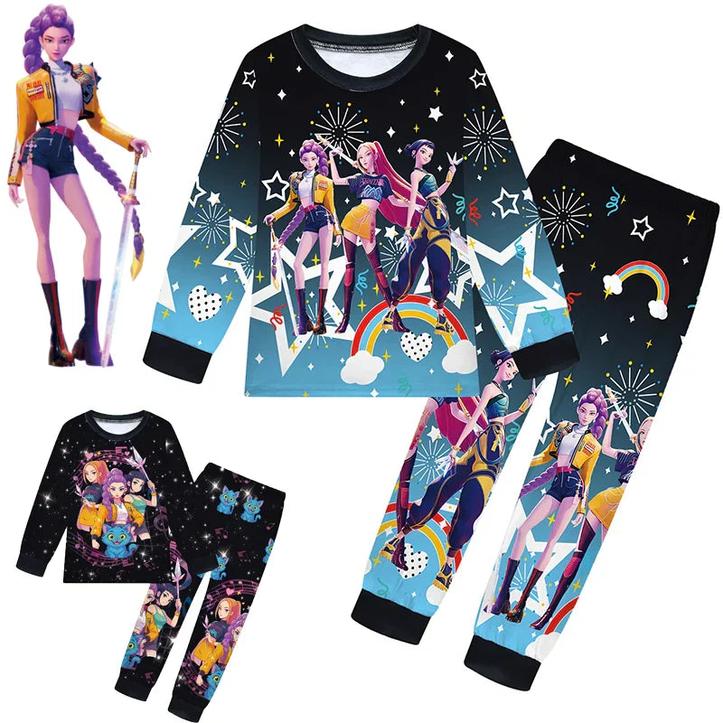 - Includes a long sleeve T-shirt and matching pants with vibrant KPop demon hunter designs- Available in various sizes for both girls and boys – perfect fit for autumn nights- High-quality print that withstands multiple washes without fading- Elastic waistband for easy wear and maximum comfort- Great gift for birthdays, holidays, or any special occasion for young KPop fans- Ideal for lounging, sleepovers, or just relaxing at home in style