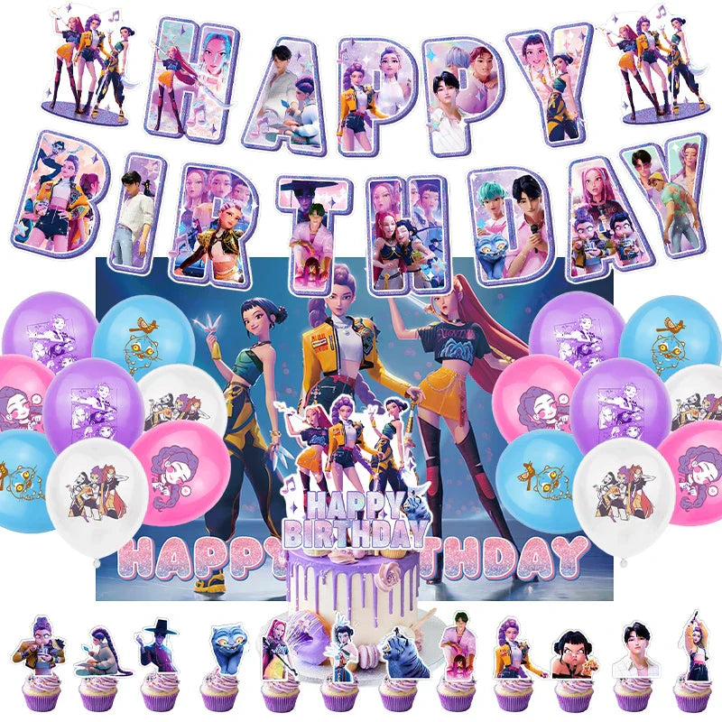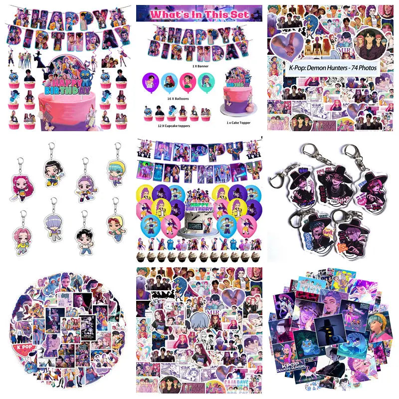 - Includes cake toppers, party balloons, keychains, and stickers featuring beloved Demon Hunters characters- Cake toppers made from food-safe PVC, ideal for cakes, cupcakes, or dessert tables- Balloons with Kpop Demon Hunters designs to add a festive touch- Collectible keychains and stickers perfect as party favors or gifts for guests- Easy to set up and suitable for both indoor and outdoor celebrations- Ideal for decorating party venues, dessert tables, or gift bags