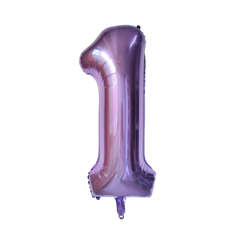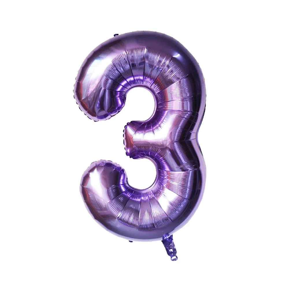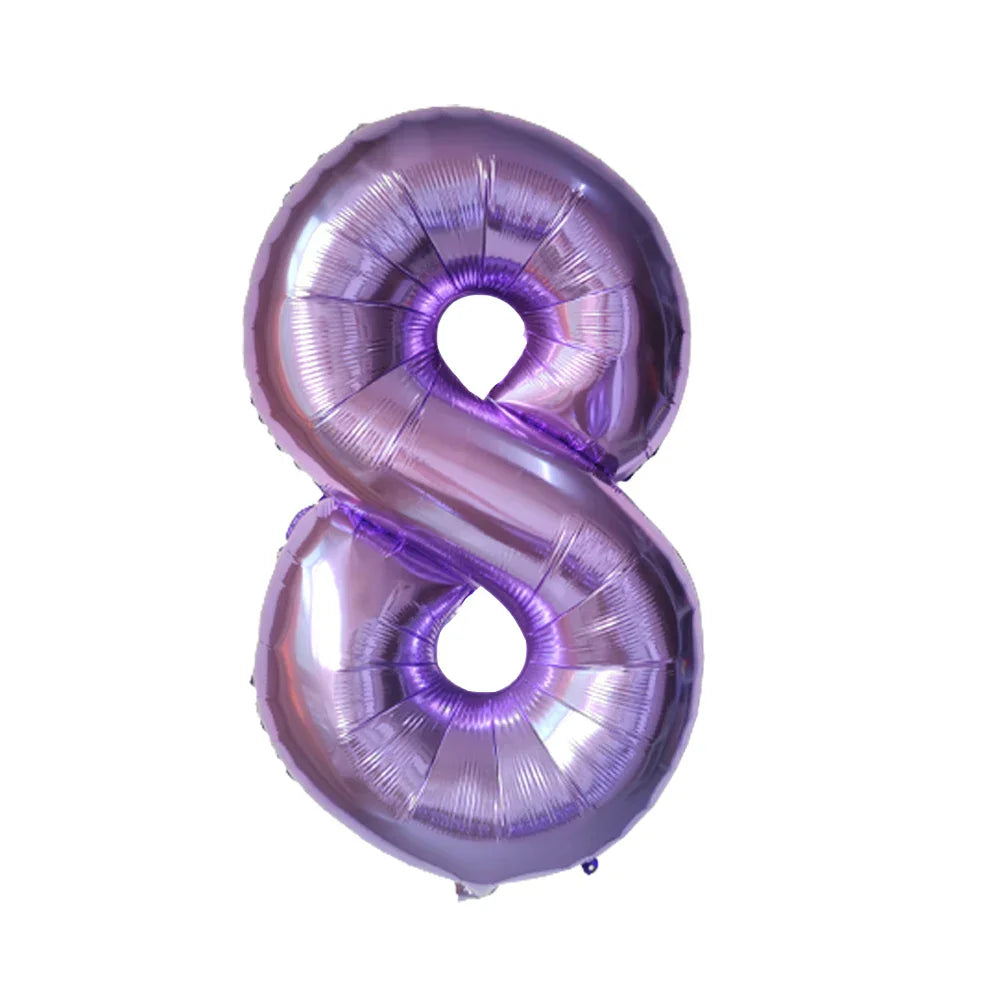 - Eye-catching purple number balloon banner for personalized age display