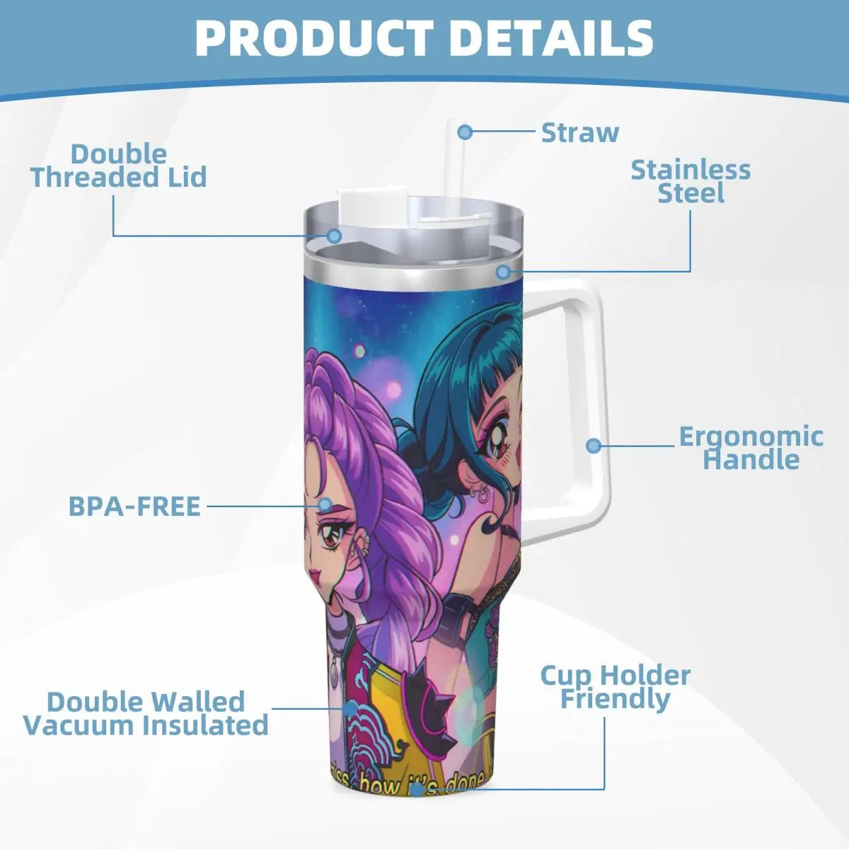 Kpop Demon Hunters Huntrix Tumbler – Stainless Steel Thermal Mug for Fans