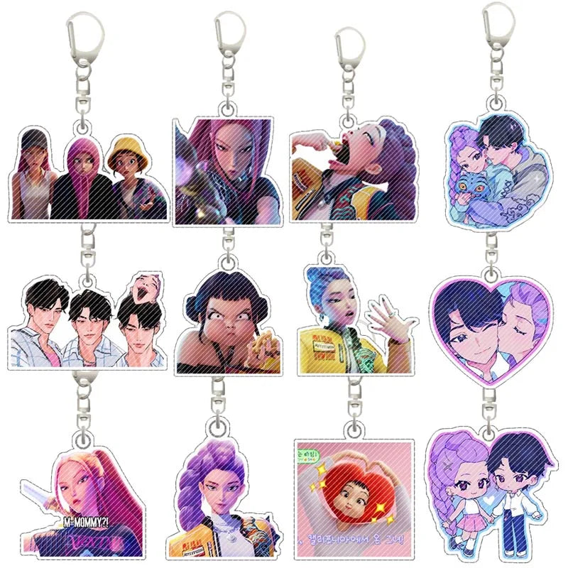 Unleash the power of your favorite K-Pop demon hunters with these fan art-inspired Huntr-x keychains. A must-have collectible for anime enthusiasts and K-Pop lovers alike!