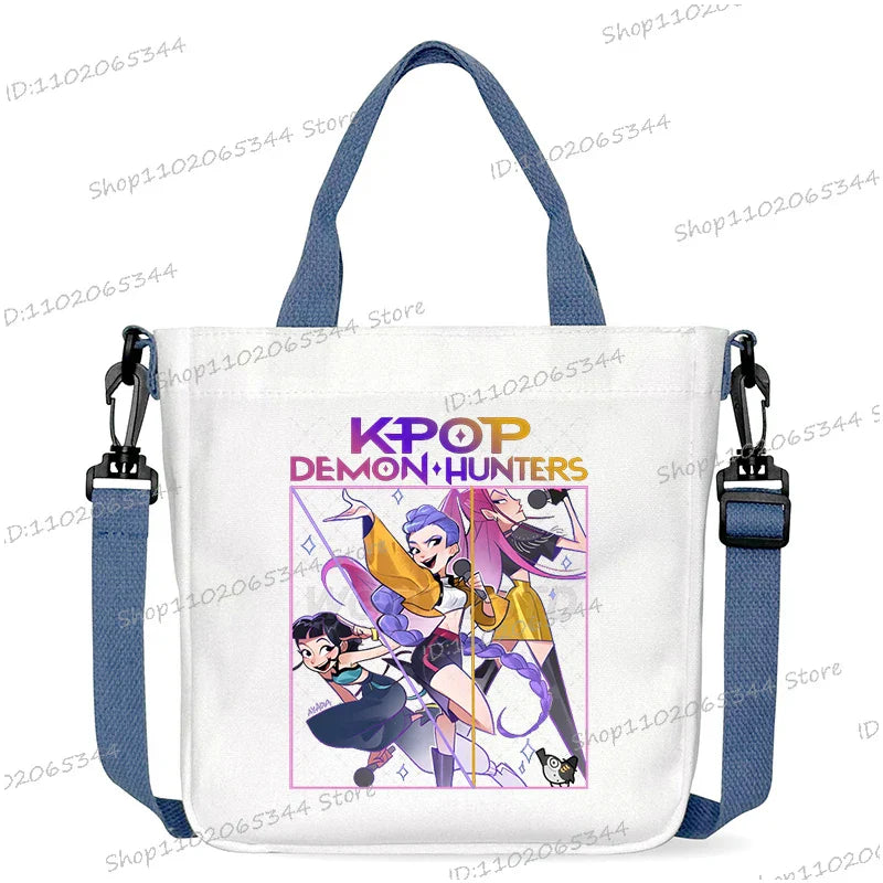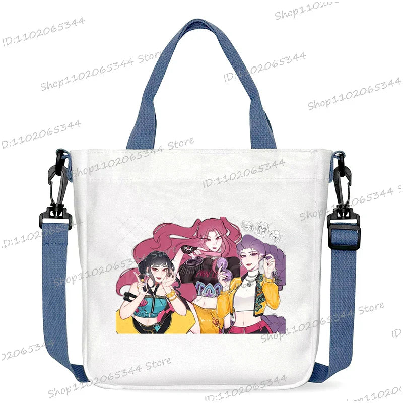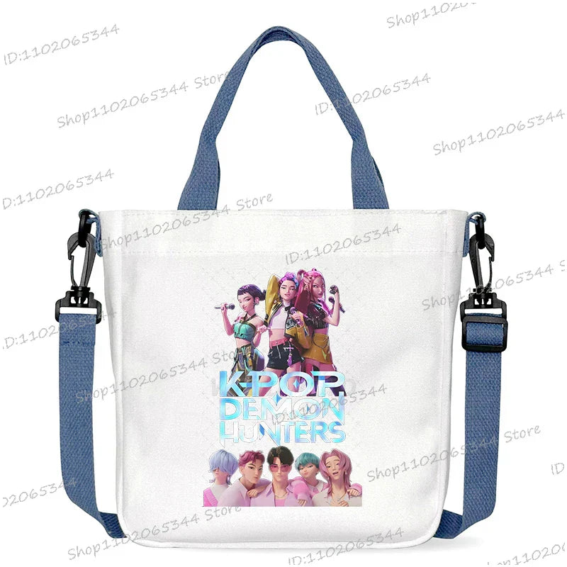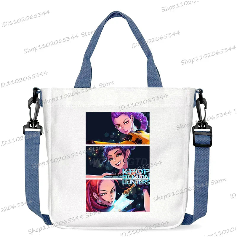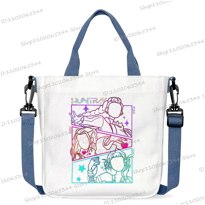 Blue White Anime KPop Demon Hunters Crossbody Bags – Stylish Canvas Totes