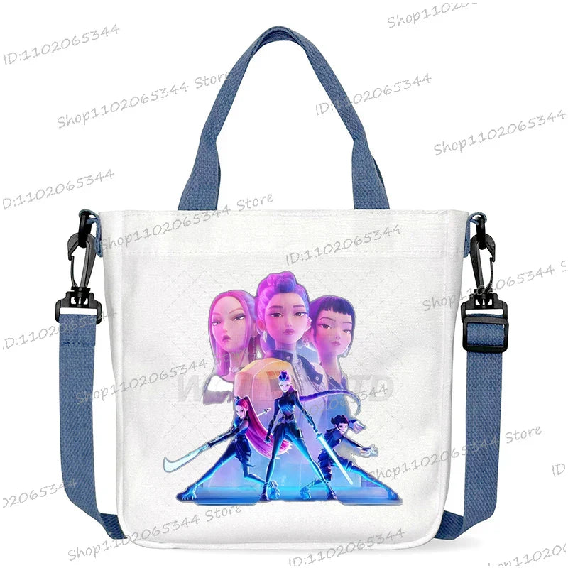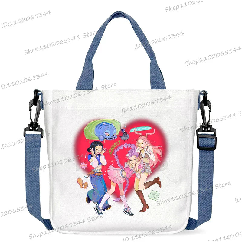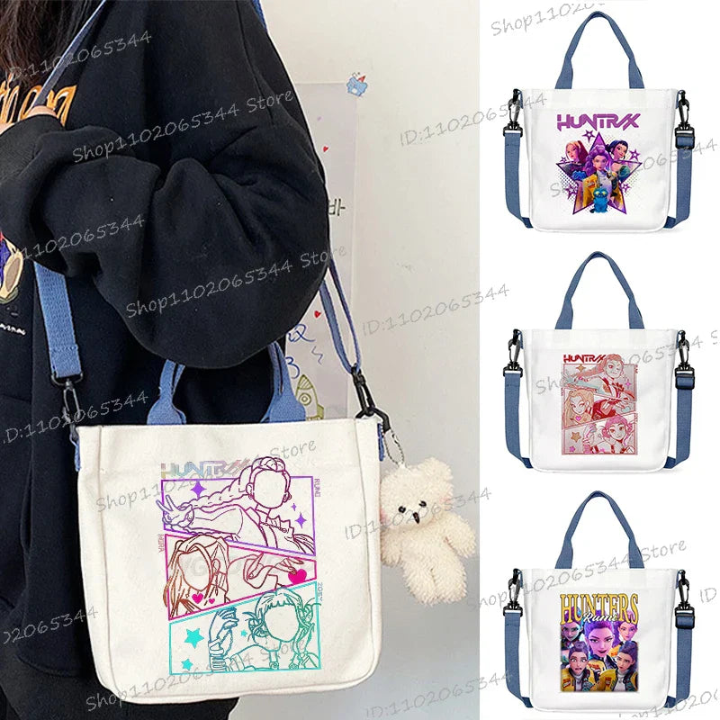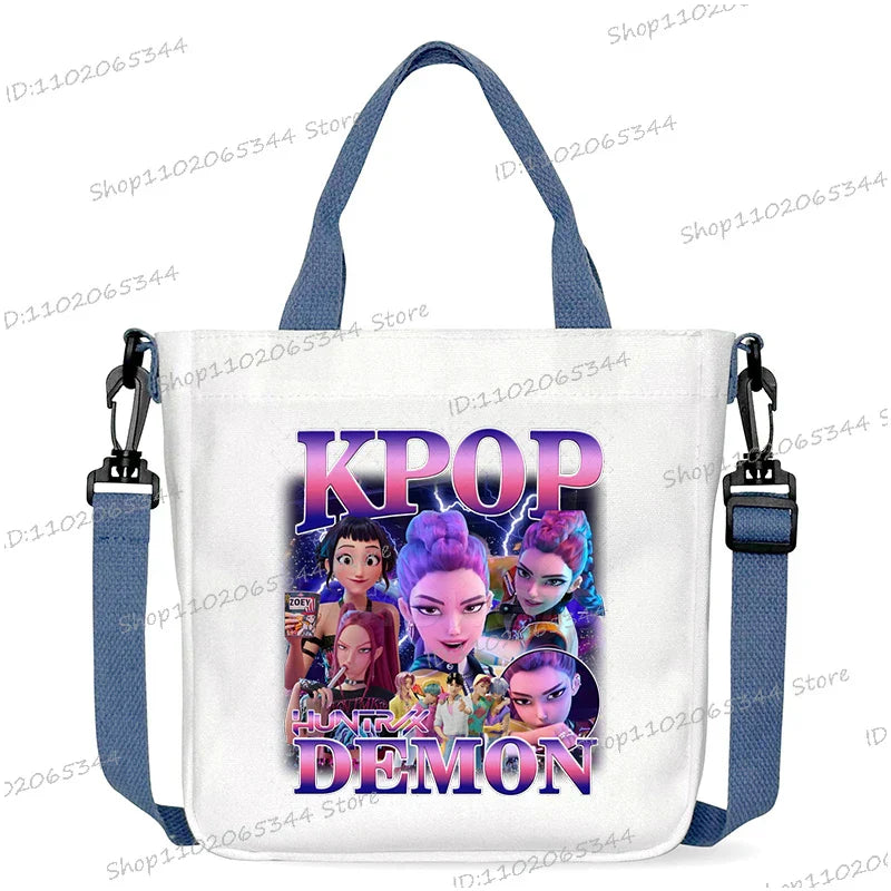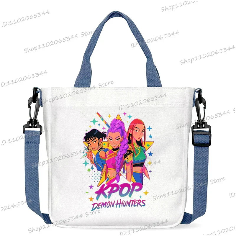 Blue White Anime KPop Demon Hunters Crossbody Bags – Stylish Canvas Totes