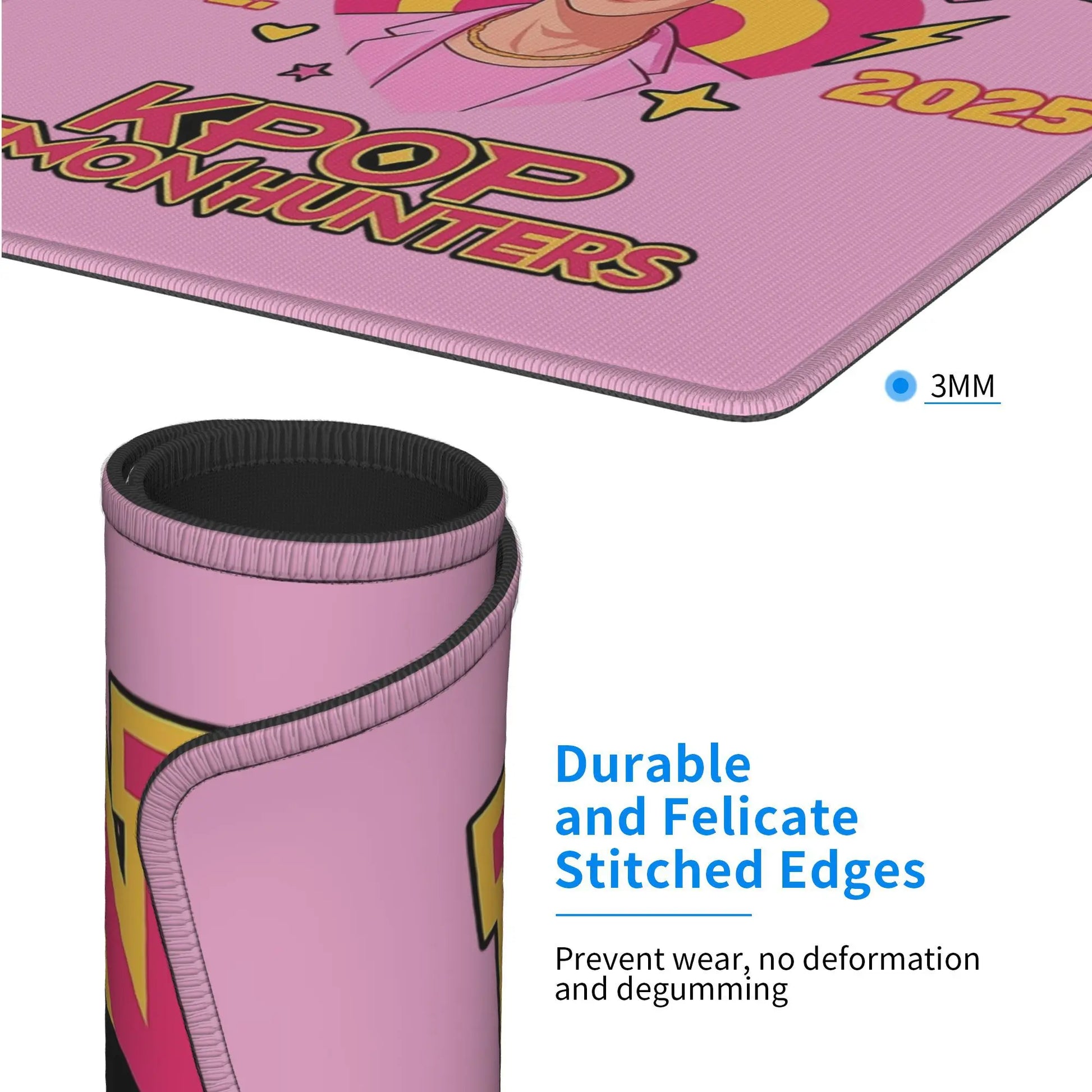 Large size to accommodate both keyboard and mouse, providing ample space for a clutter-free deskNon-slip rubber base ensures stability, preventing unwanted movement during useHigh-resolution print featuring Jinu from the Saja boys, capturing the dynamic energy of KpopDurable stitched edges to prevent fraying and prolong the lifespan of the matIdeal for home offices, gaming setups, or any workspace needing a touch of Kpop flairEasy to roll up and transport, making it perfect for on-the-go fans