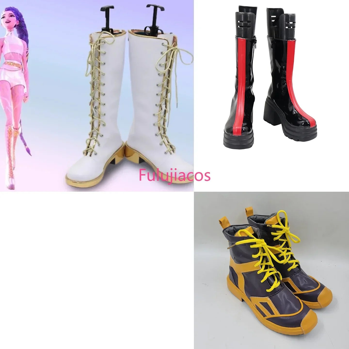 Step into the world of fantasy with these Fulujiacos anime Kpop Demon Hunter cosplay shoes. Designed for fans and cosplayers alike, these shoes are perfect for completing your Rumi, Zoey, or Mira cosplay outfit and making a statement at any event.