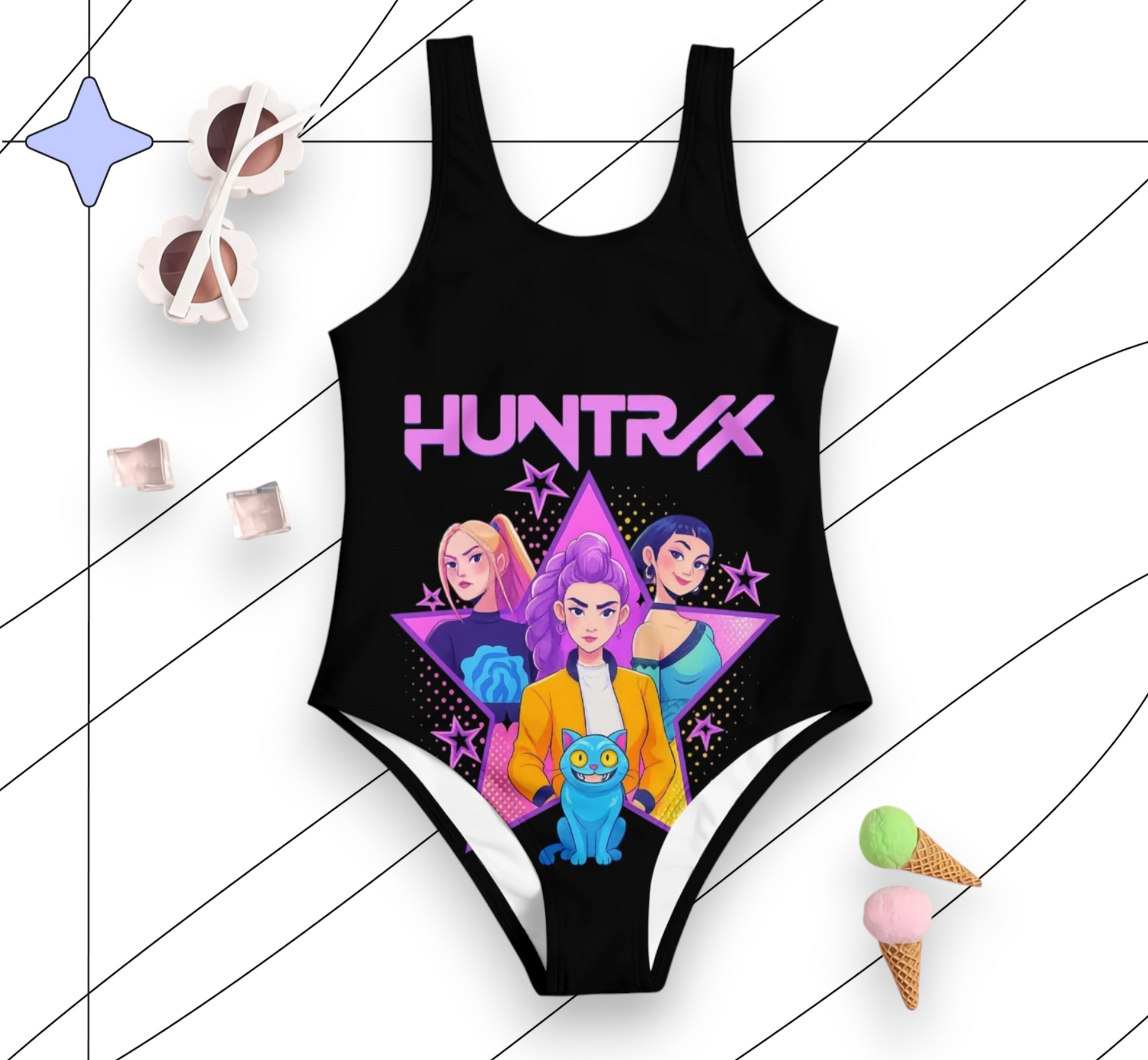 Dive into summer with the K-Pop Demon Hunters Inspired One-Piece Swimsuit – a must-have for every little fan who wants to shine at the beach or pool! 🌊✨