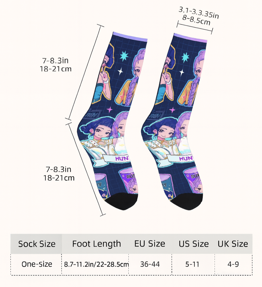 Step into comfort and style with the Saja Boys K-Pop Demon Hunter Socks – the ultimate must-have for K-Pop fans and everyday wear. Designed with a trendy Demon Hunter inspired print, these socks let you show off your fandom while staying fashionable.