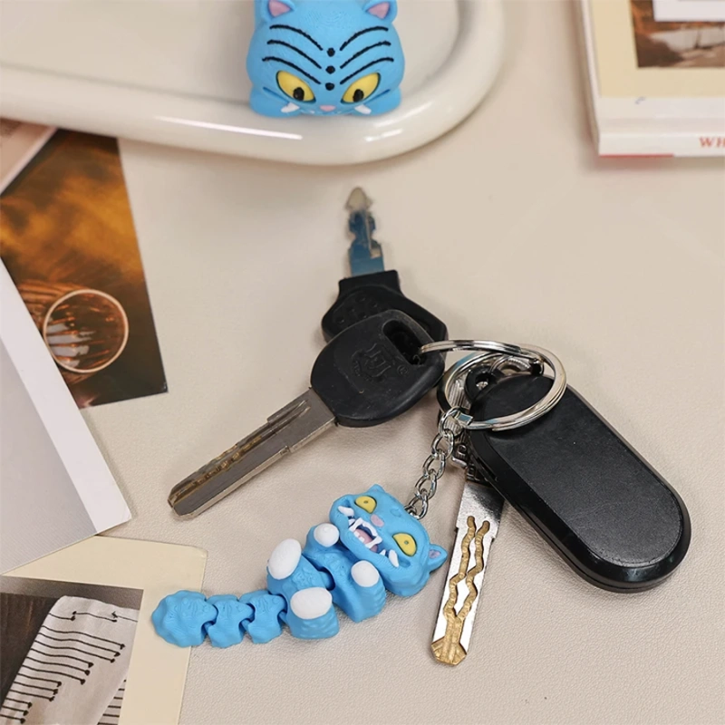 Unleash your fandom with this 3D printed anime-inspired tiger keychain from the K-Pop Demon Hunters universe. Designed with vibrant colors and detailed stripes, this toy brings your favorite characters to life in a fun and portable way.