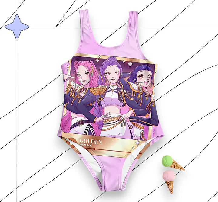 Make this summer unforgettable with the Trendy K-Pop Demon Hunters 3D Print Swimsuit – the perfect blend of fashion, comfort, and anime-inspired fun!