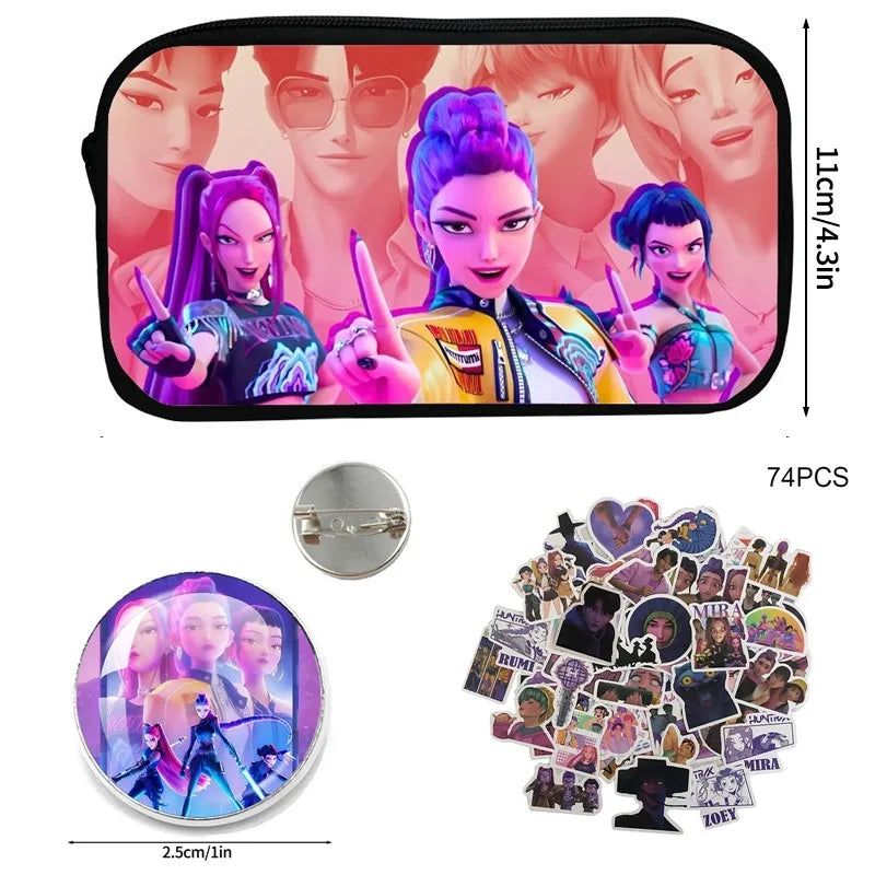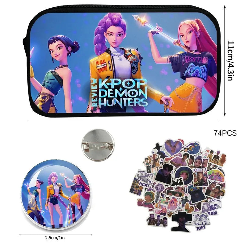 Kpop Demon Hunter Pencil Case – Cartoon Huntrix Pen Pouch for Students