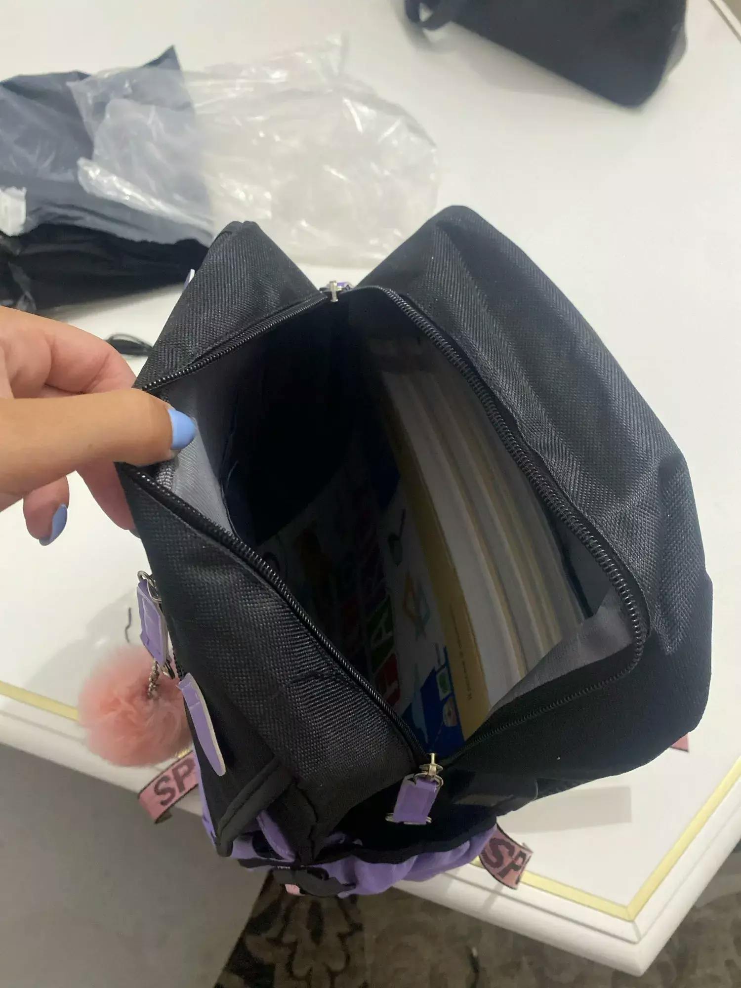 - Spacious main compartment with multiple pockets for organization