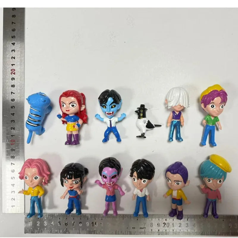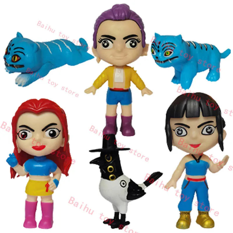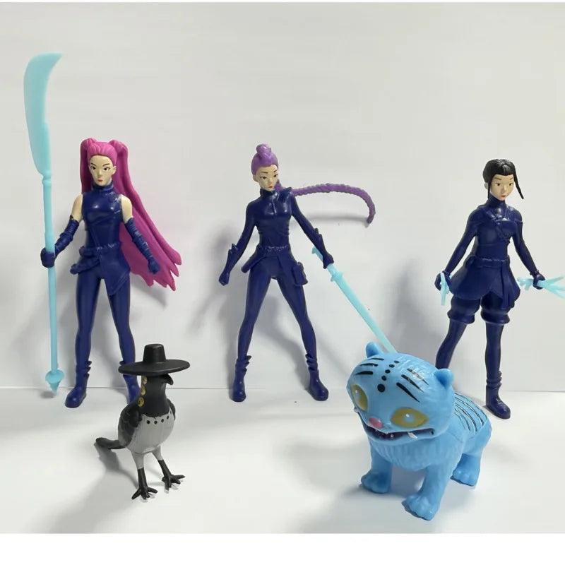 Showcase your love for Demon Hunters with these detailed cartoon-style action figures — featuring Rumi, Mira, Zoey, and Tiger, perfect for fans, collectors, and kids alike.