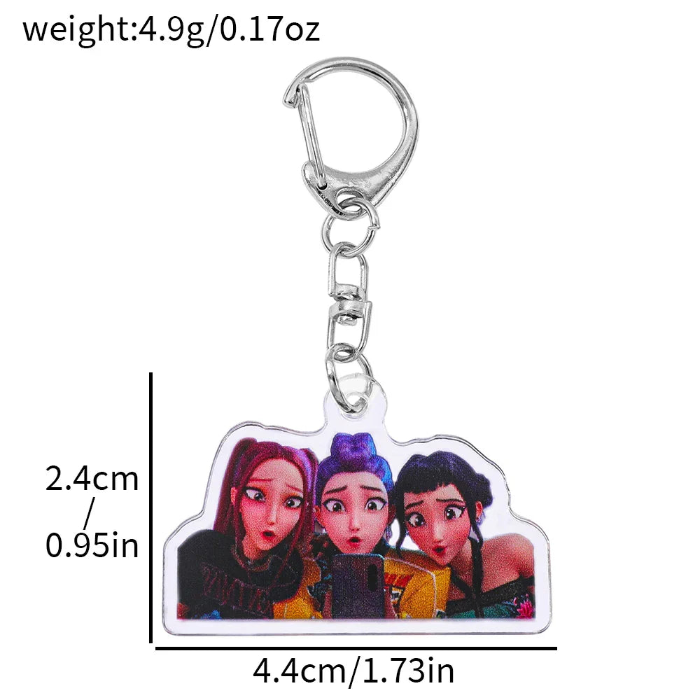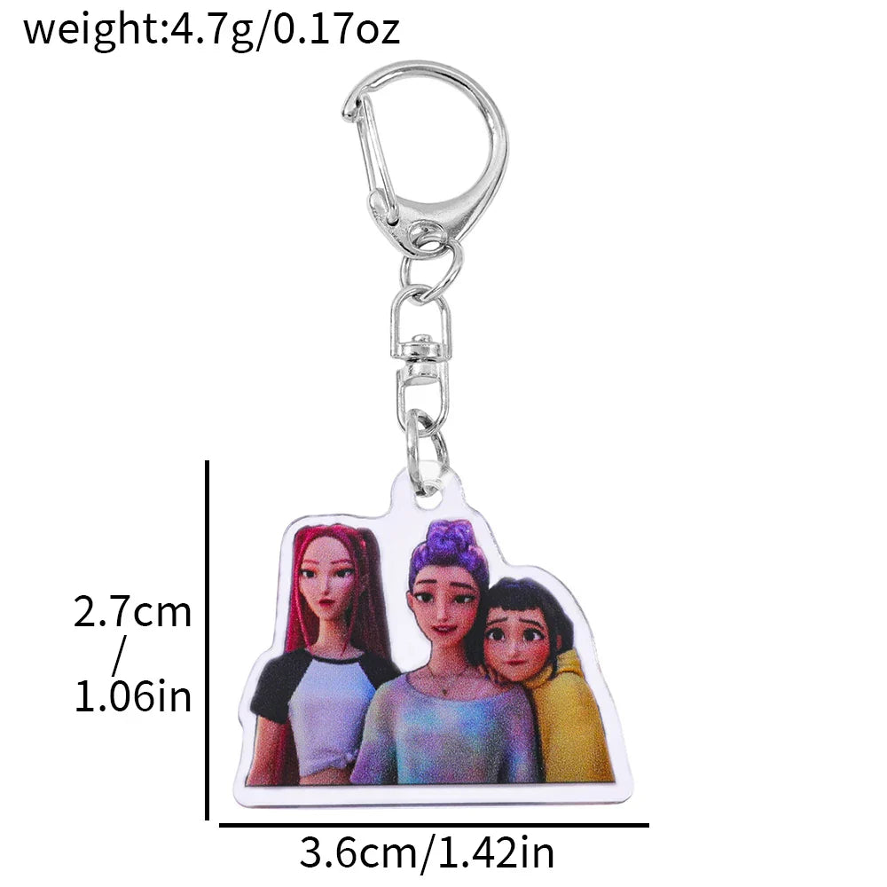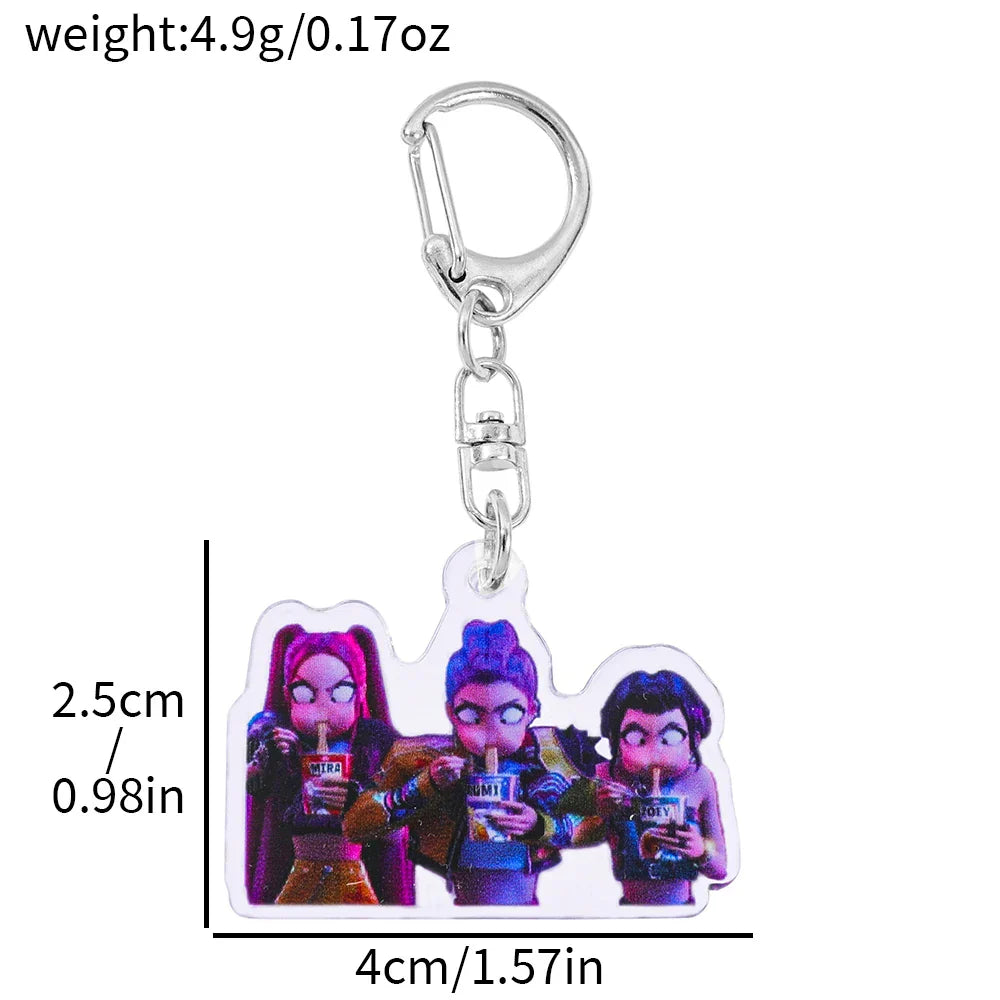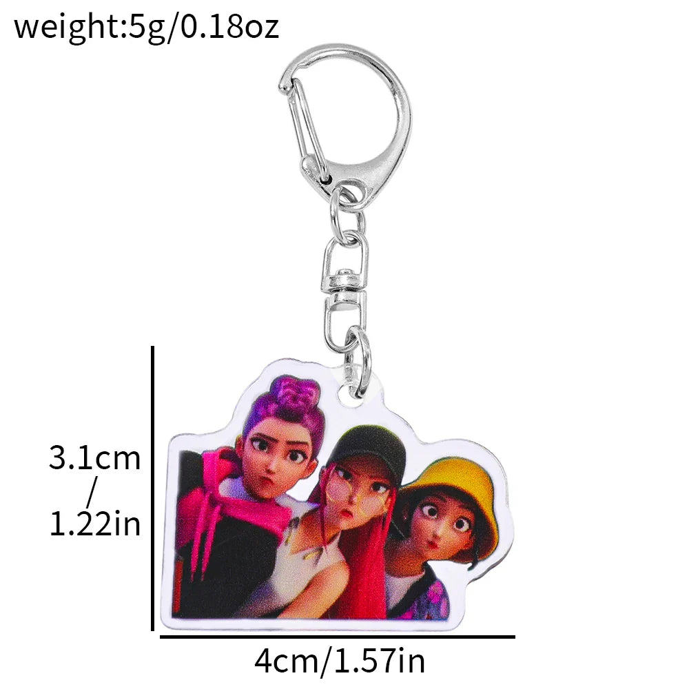 - Includes popular characters Rumi, Zoey, Jinu, and Mira in mystery keychain form